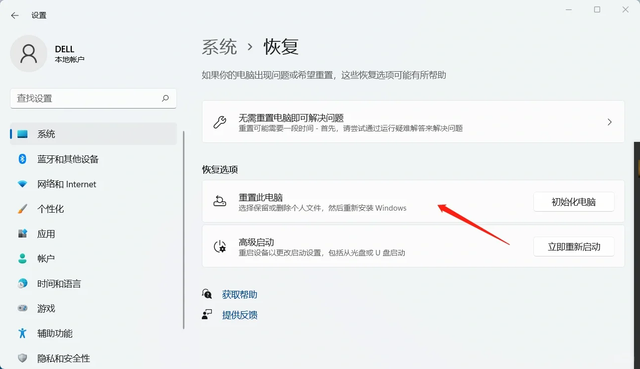 如图 保留我的文件重置系统后,计算机中的个人文档,比如创建的 Word ,图片,视频等文件会保留,但自行安装的应用程序以及对 Win11系统更改过的设置会