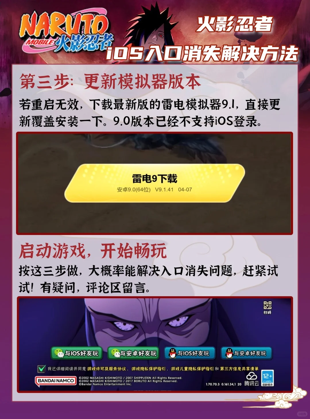 按照这三步操作,大致率能解决雷电模拟器中《火影忍者手游》iOS入口消失的问题。