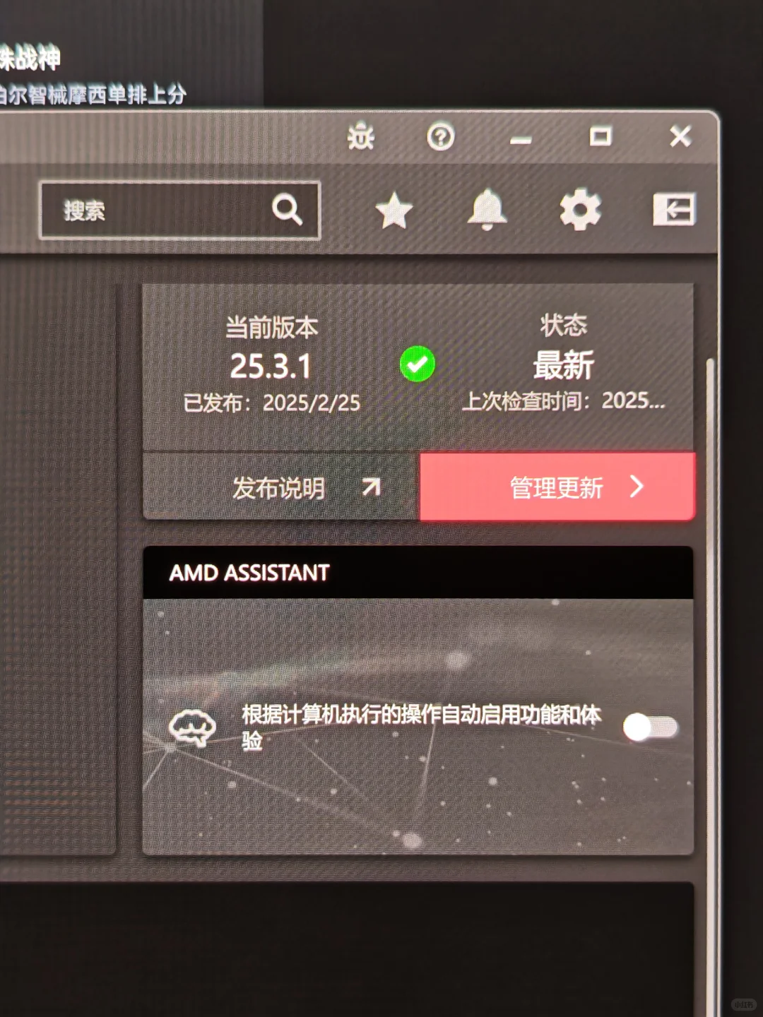 AMD 最新驱动25.3.1注意⚠️易小霖10个月前发布3920举报我是rx7600,更新最新驱动记得升级win11到最新系统,系统和驱动版本需要同时最新才可以!不然就会打不开驱动软件,守望先锋找不到渲染设备! Win11是最新版本,更完驱动卡到爆炸,桌面拉选框都掉帧,三角洲进靶场30帧都不稳,直接给我卡退出了