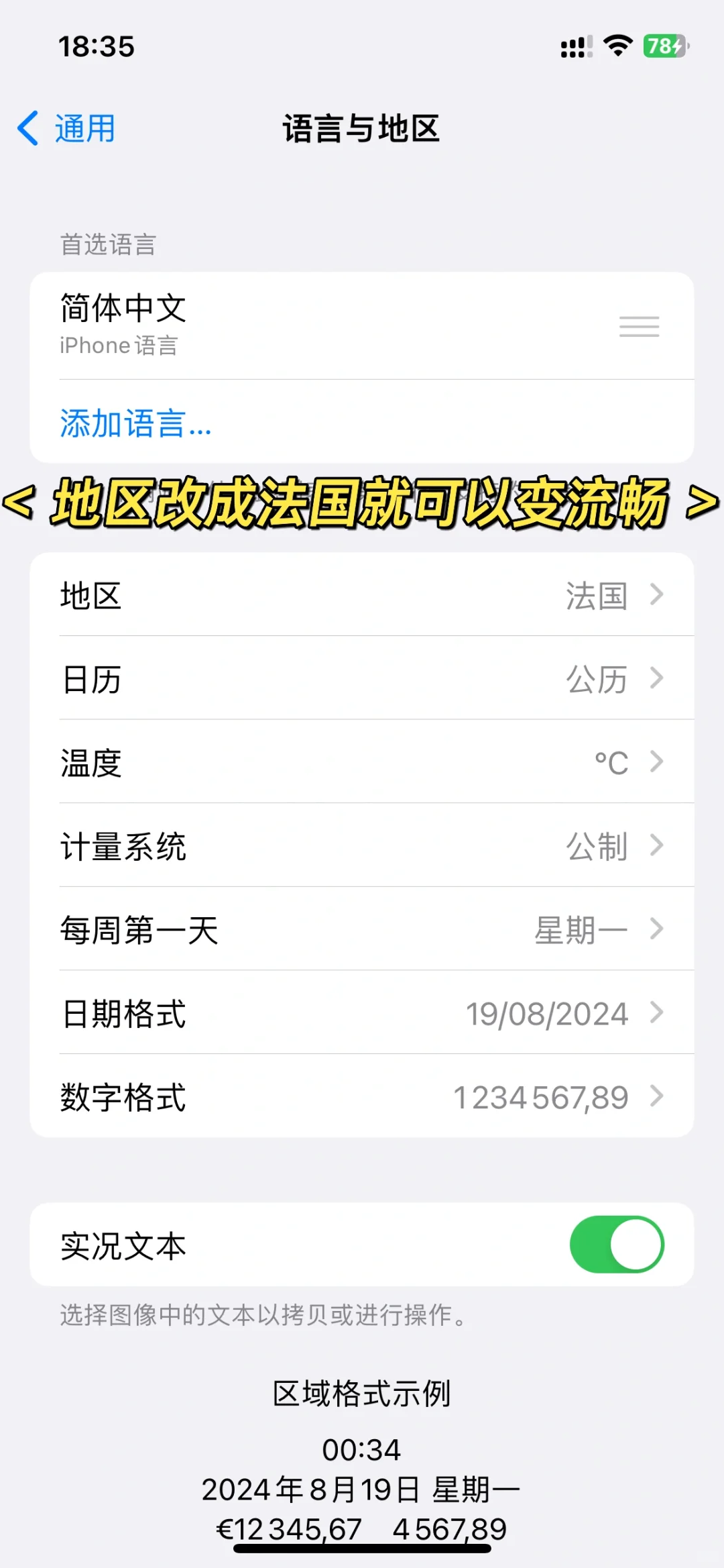这是一个非常简单的方法,只需要把地区改成法国,手机瞬间变流畅,方法:设置-通用-语言与地区-把地区改成法国