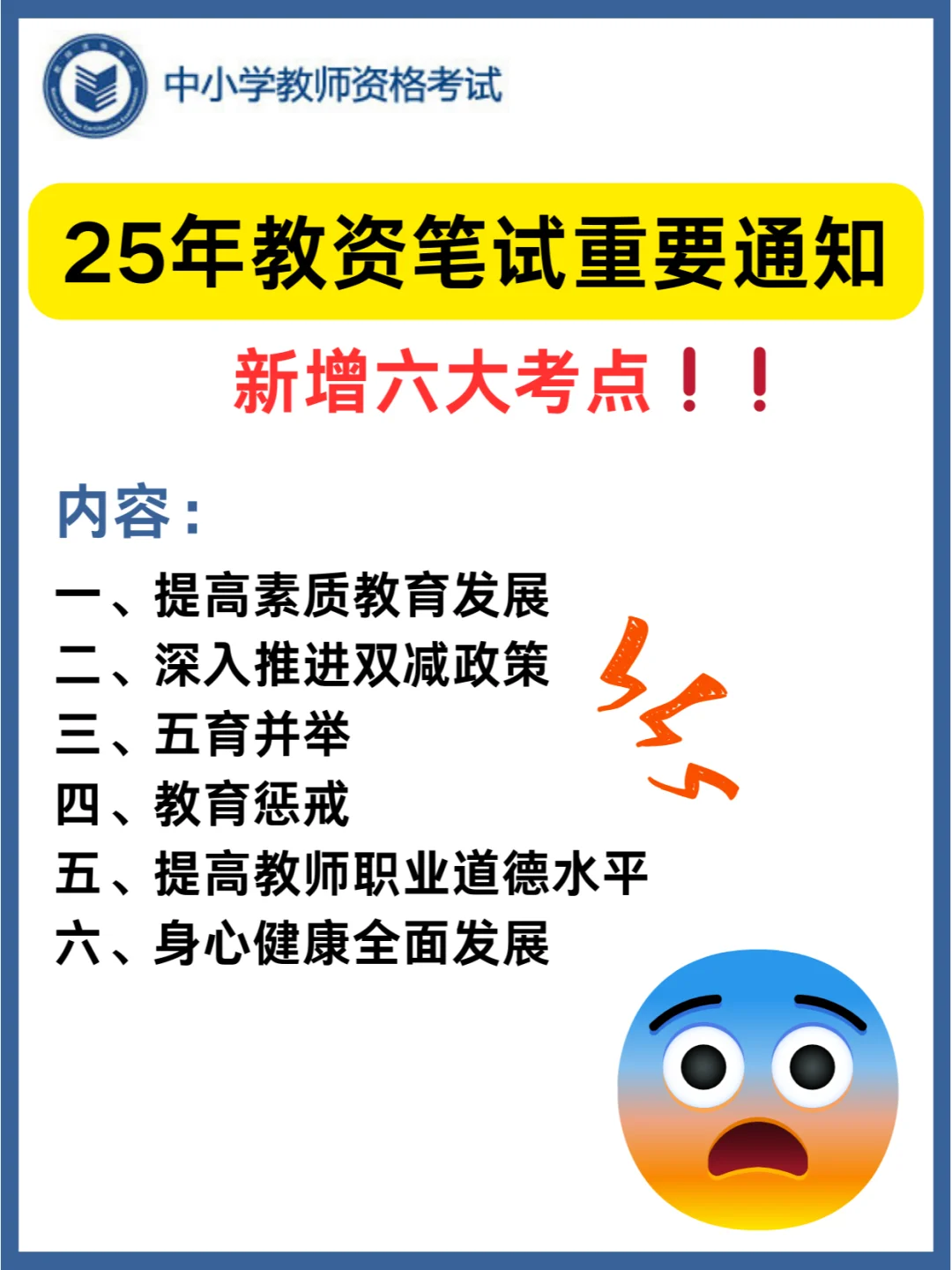 2025年的教师资格证考试中,考生们需要特别注意,仅仅依赖过去的复习资料是远远不够的❌。今年的考试内容有了显著的更新,新增了六大重要考点,这对于已经报考的考生来说,无疑是一个需要重视的信息。📢