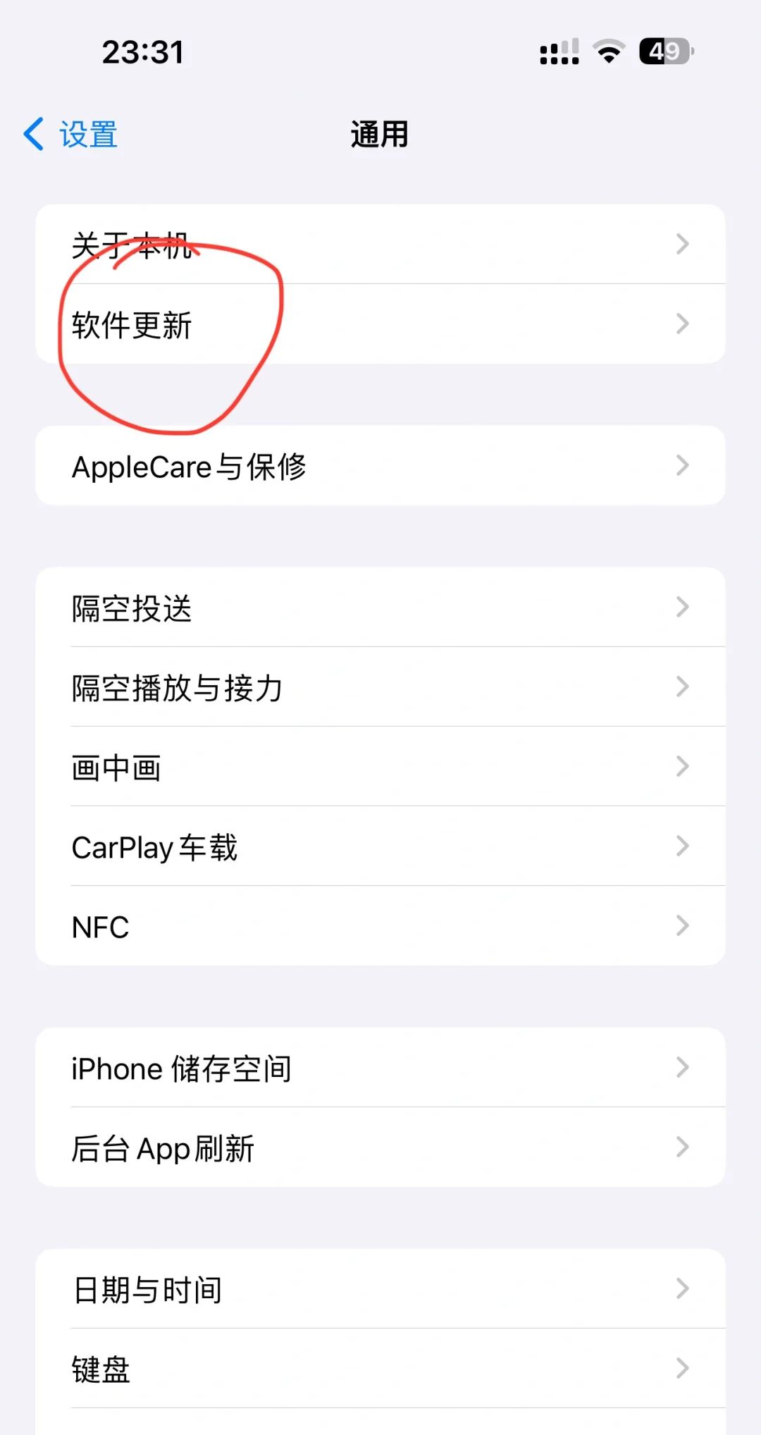 1️⃣首先我们打开设置,点击通用找到图一软件更新