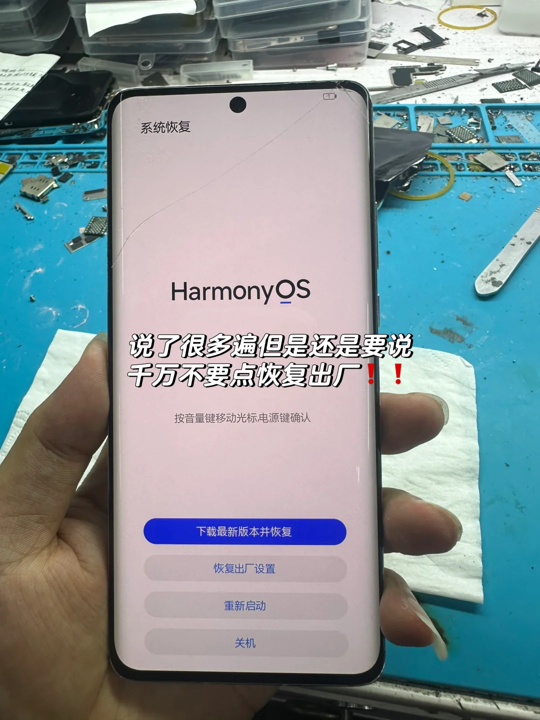 说了很多遍出现这个页面资料重要的话千万不能点恢复出厂,点了资料就全部丢失,手机修好也是没有的。但是这位宝子表示也没啥重要的,所以就抱着侥幸心理点了试试,结果点了还是这样,所以找到我们进